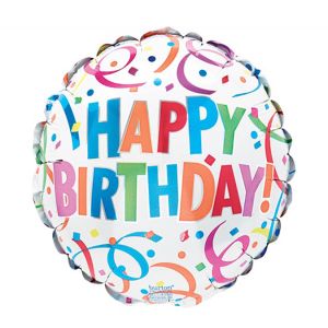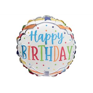 15. 10cm (4”) Rnd Happy Birthday Bash - White/Multi