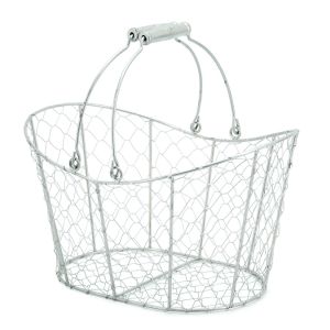 8. Metal Oval Chicken Wire Mussel Basket w/Handles 33Lx24Wx19Hcm - Silver